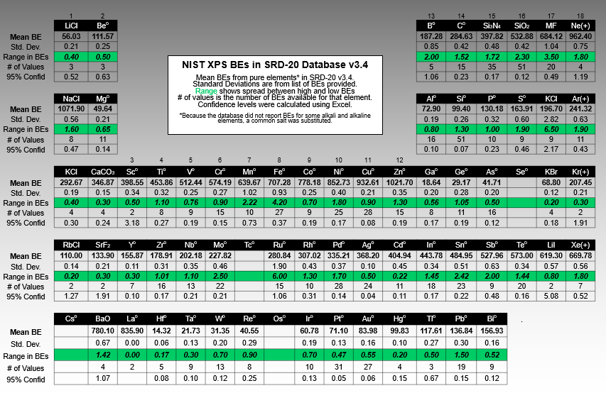 Statistical Analysis showing “Poor Standard Deviations” for Pure Elements in NIST XPS Database