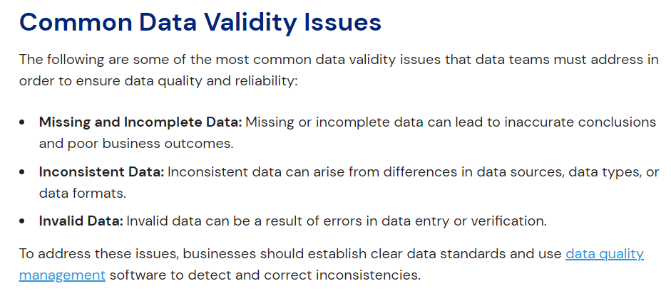 Industrial (Commercial) Methods for Ensuring Data Validity